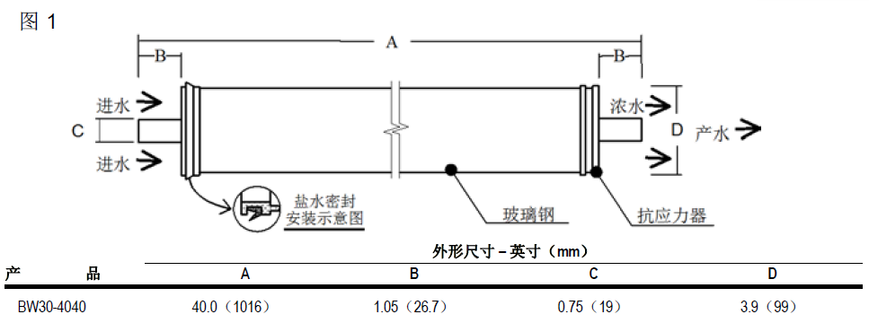 2. 陶氏反滲透膜元件BW30-4040配公稱內(nèi)徑4.0寸的壓力容器。