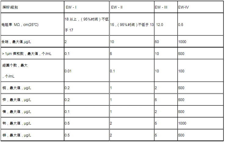 中國國家電子級超純水標準GBT11446.1-1997