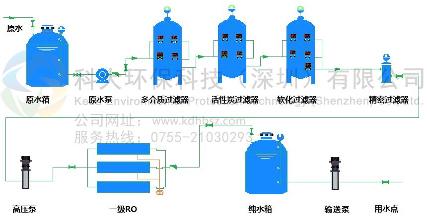 ① 預處理(含原水泵、多介質過濾器、活性碳過濾器)